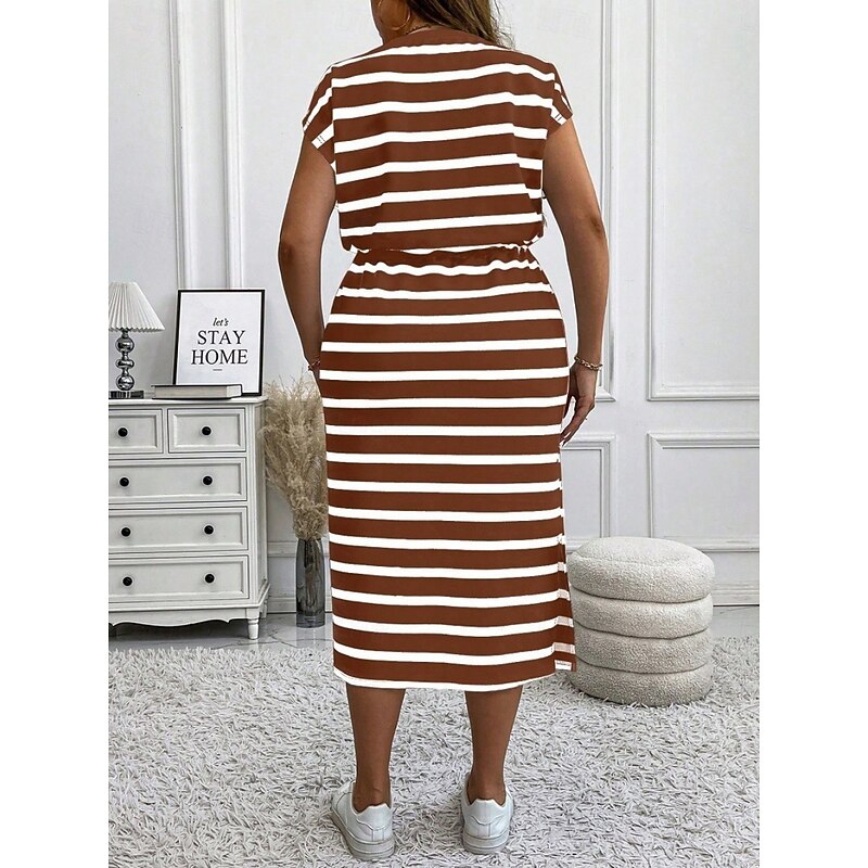More information about Women's Plus Size Casual Dress Striped V Neck Short Sleeve Summer Spring Fashion Modern Casual Midi Dress Daily Holiday Dress