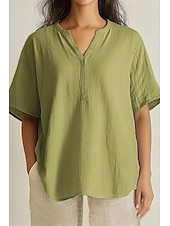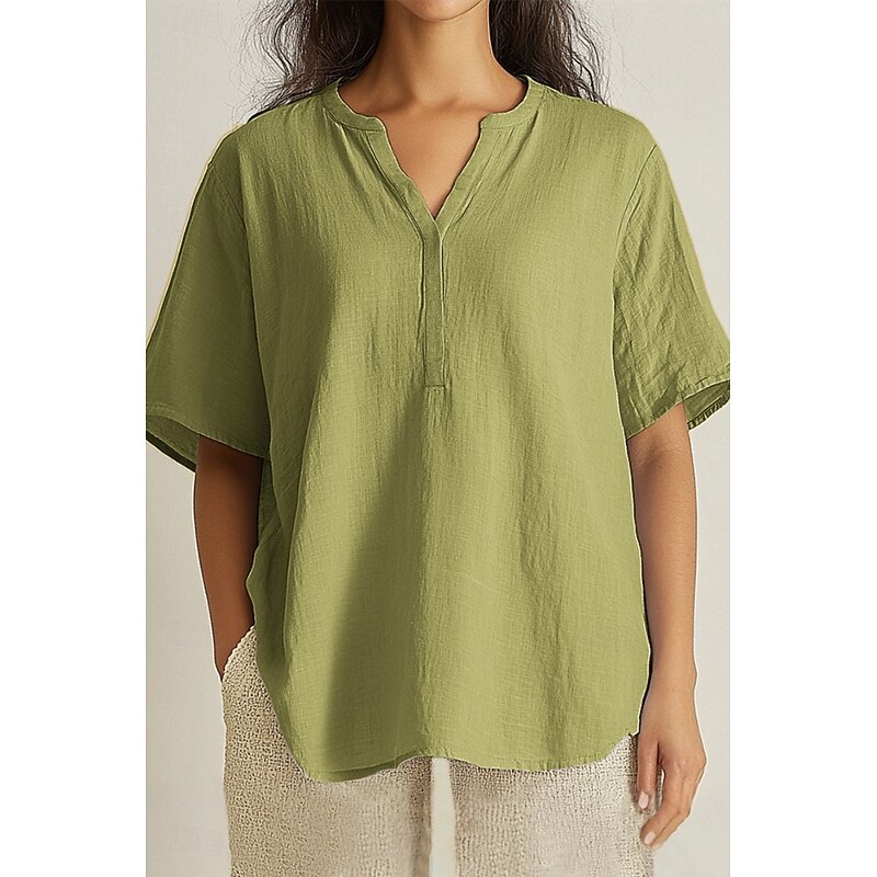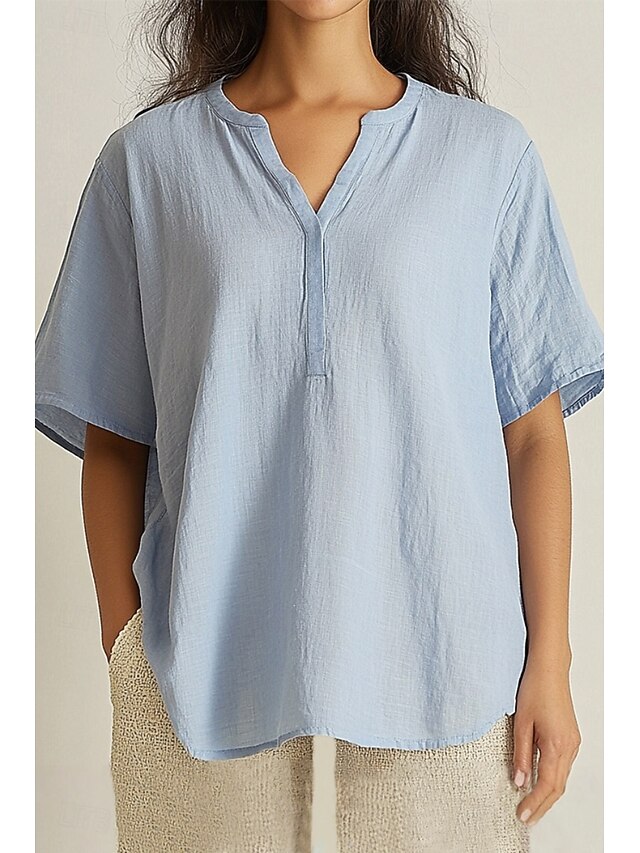 More information about Women's Shirt Linen-Inspired Shirts Blouse Plain Basic Casual Short Sleeve V Neck Regular Tops Daily Holiday Orange Green Light Blue Summer