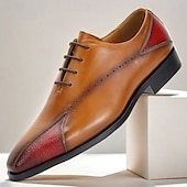 More information about Men's Two-Tone Brown and Red Leather Oxford Shoes – Luxury Prom and Gala Lace-Up Shoes for Formal Occasions