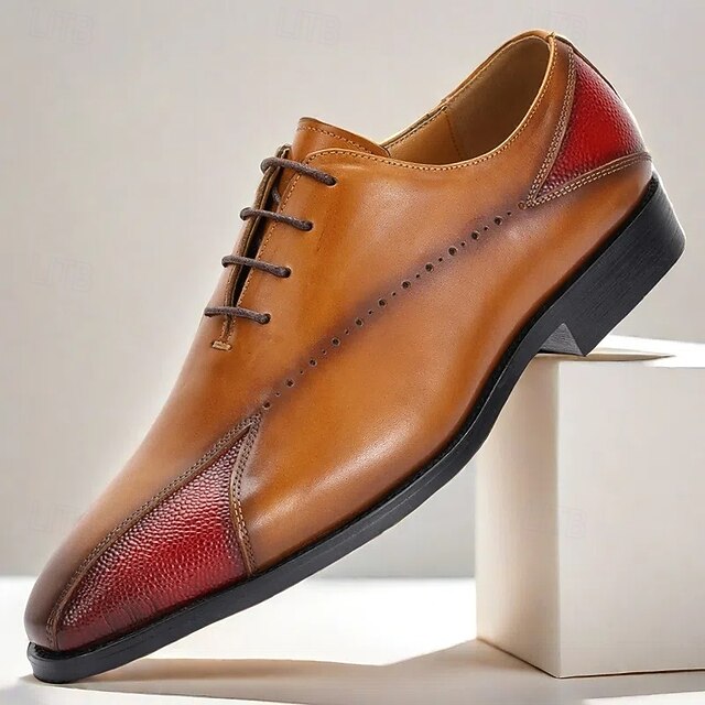 HOT ! Men's Two-Tone Brown and Red Leather Oxford Shoes – Luxury Prom and Gala Lace-Up Shoes for Formal Occasions