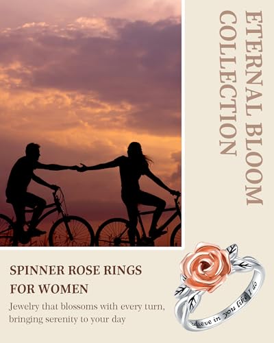 Fidget Spinner Rings for Anxiety for Women - 925 Sterling Silver Sunflower/Rose/Daisy Promise Bands Relieving Stress Jewelry Anti Anxiety Gifts for Couples Women 4