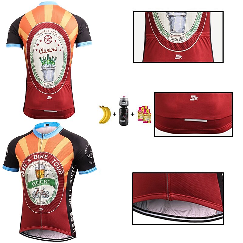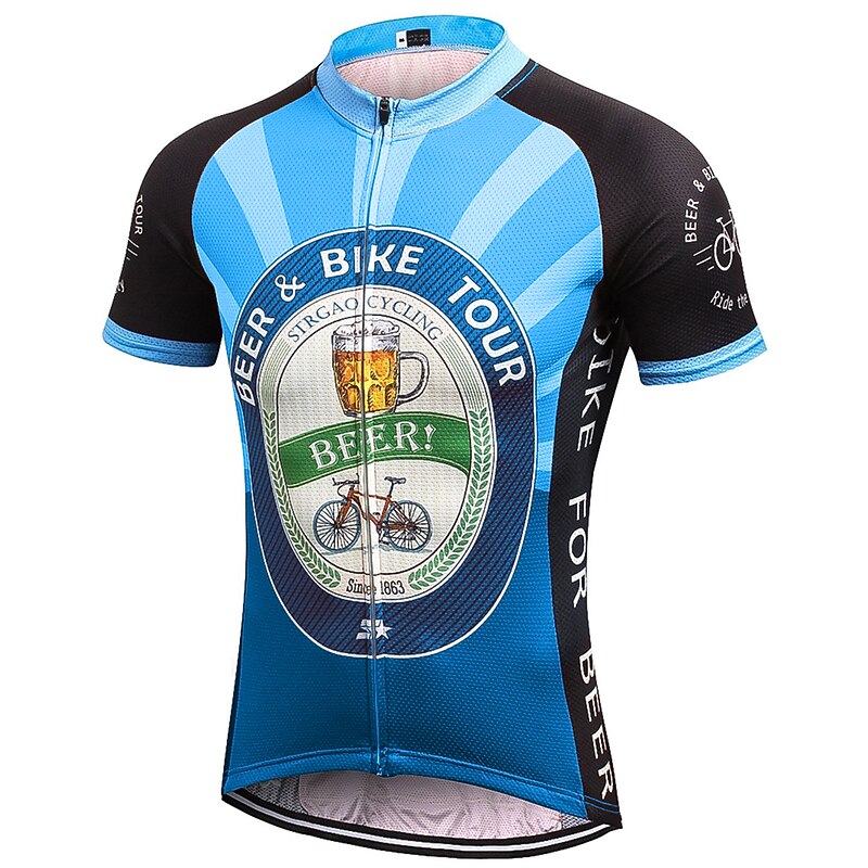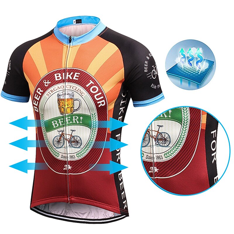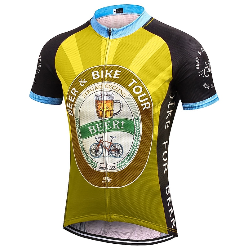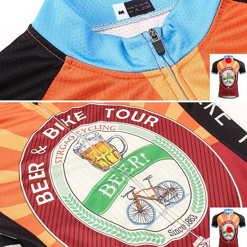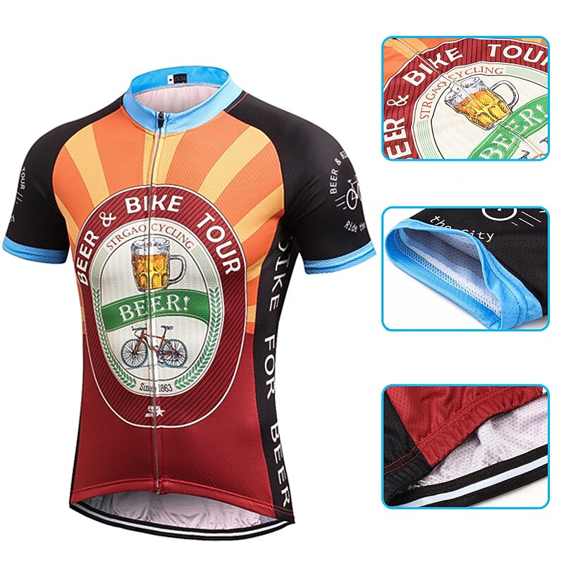 Highlights - Keep your essentials close at hand with the classic 3-pockets design on the back of this cycling shirt for men. - Stay dry and comfortable during your ride with the quick-dry, breathable wicking fabric used in the short sleeves of this jersey. - Don't let sliding shirts interfere with your cycling. The anti-slip silicone hem and high elastic tricot fabric cuff keep this shirt in place while pedaling. - Ensure your safety with the reflective strip on this cycling shirt, perfect for dark conditions and avoiding traffic accidents. - This shirt is perfect for men who love athleisure and want a comfortable and fashionable option. - With its micro-elastic design, it is suitable for both mountain bike MTB and road bike cycling. - Get a unique and eye-catching look with the novelty, retro, or Oktoberfest beer pattern options. - Experience the quick-dry and moisture-wicking functions of this cycling shirt, designed to keep you cool and focused during your ride.