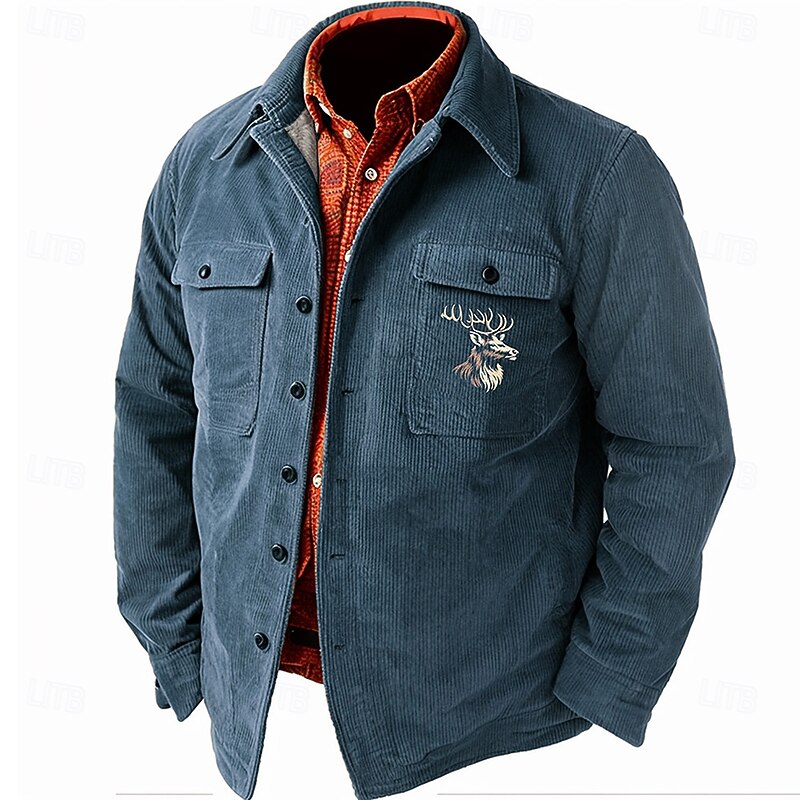 Highlights [Fabric]: Crafted from premium polyester, this men's cowboy corduroy shirt jacket offers a soft, medium-thickness fabric that delivers both comfort and durability. Its corduroy texture is ideal for fall and winter wear, providing warmth without sacrificing style. [Fit]: Designed with a regular fit, this shirt jacket ensures ease of movement and comfort. It's suitable for layering over shirts or tees, making it a versatile piece for various outfits and occasions. [Design Highlights]: The shirt jacket features a classic turndown collared neckline and a button-down front, adding a timeless touch to its vintage and tribal style. It includes two practical flap pockets on the chest, accented with a 3D print design that enhances its rustic charm. [Occasions]: Perfect for daily wear, this shirt jacket is ideal for a variety of casual settings, from weekend outings to relaxed gatherings. Its rugged yet stylish look makes it an excellent choice for those who appreciate a blend of practicality and fashion during the cooler months. [Size Range]: Available in a range of sizes from S to 3XL, this versatile shirt jacket caters to adults of various sizes. Choose from classic colors such as brown, navy blue, and army green to suit your personal style.