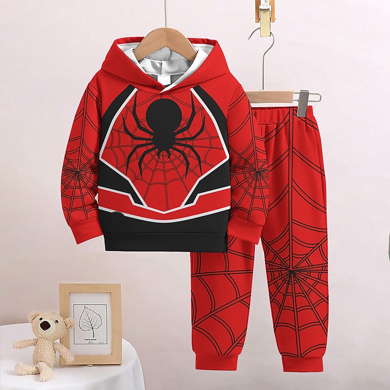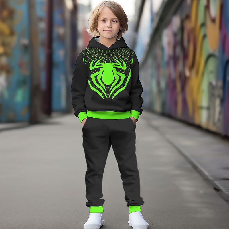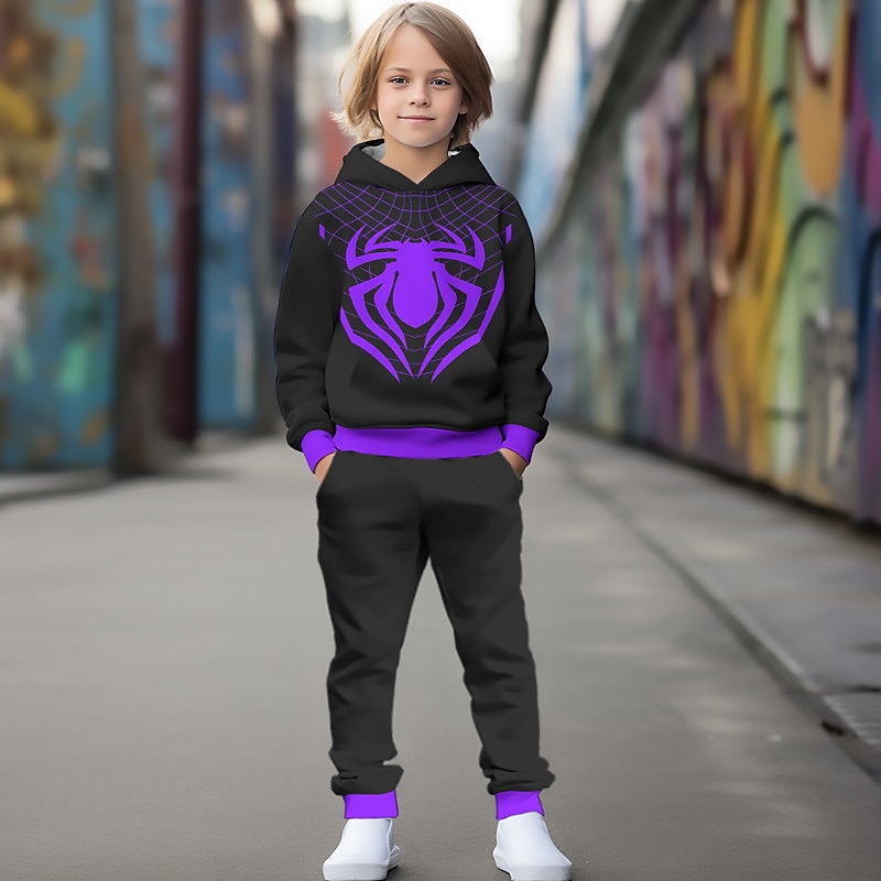 miles morales costume Halloween Boys 3D Spider Hoodie & Pants Set Long Sleeve 3D Printing Fall Winter Active Fashion Cool Polyester Kids 3-12 Years Outdoor Street Vacation Regular Fit 2