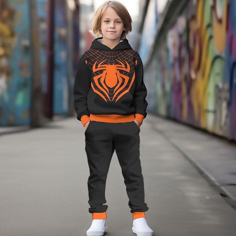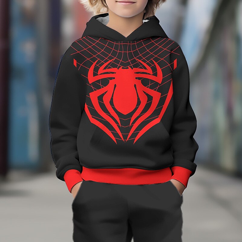 HOT ! miles morales costume Halloween Boys 3D Spider Hoodie & Pants Set Long Sleeve 3D Printing Fall Winter Active Fashion Cool Polyester Kids 3-12 Years Outdoor Street Vacation Regular Fit