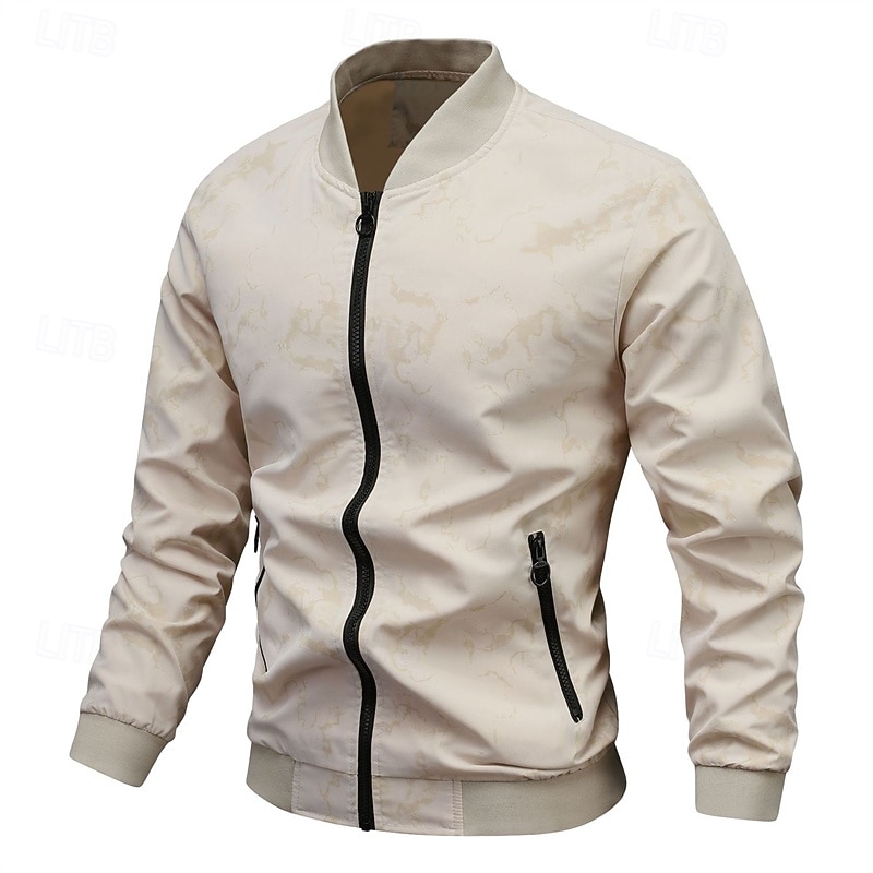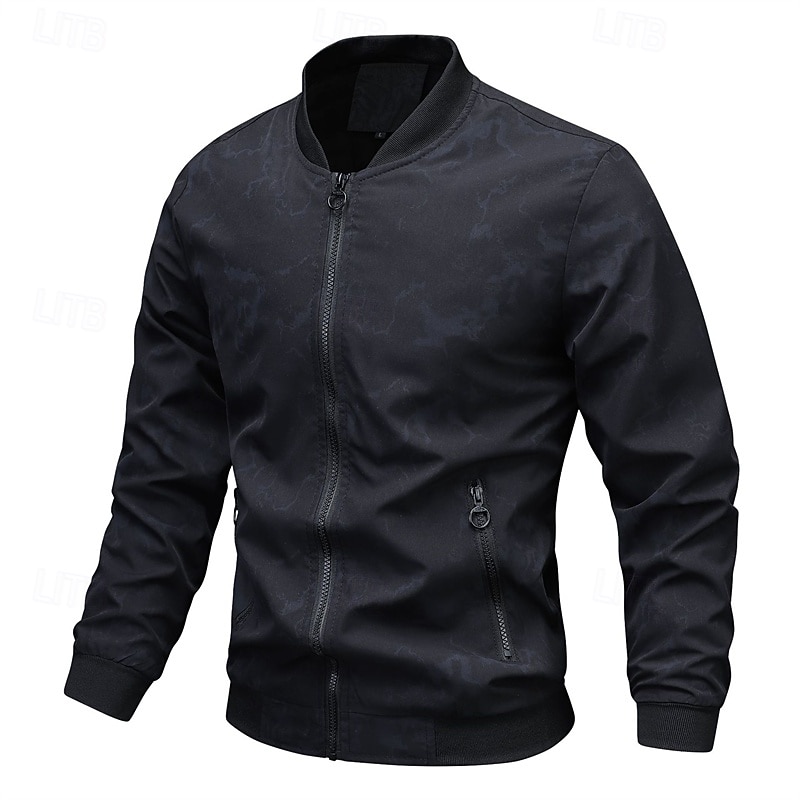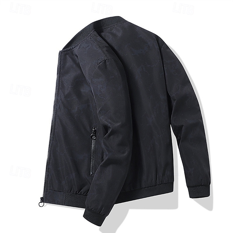More information about Men's Lightweight Jacket Casual Jacket Vacation Daily Pocket Spring Fall Color Block Fashion Classic Stand Collar Regular Black Dark Green Beige Jacket