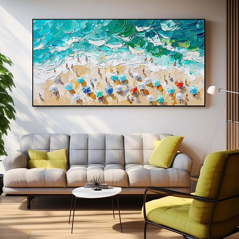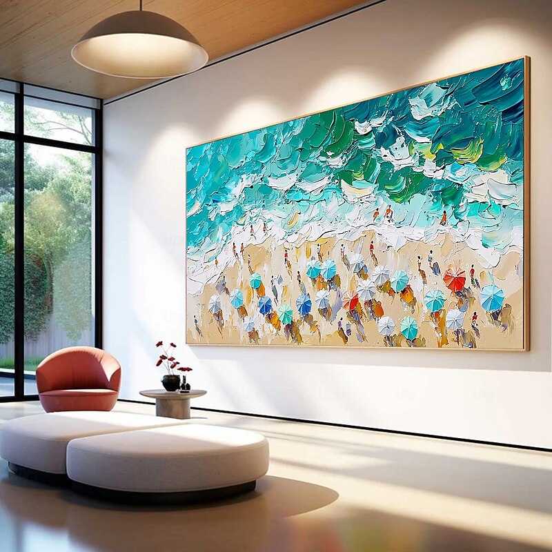 $139.99 - Handmade Original Summer Beach Oil Painting On Canvas Abstract Beach Party Wall Art for Home Decor With Stretched Frame/Without Inner Frame Painting 2025. Shop for cheap Landscape Paintings online? Buy at lightinthebox.com on sale today!