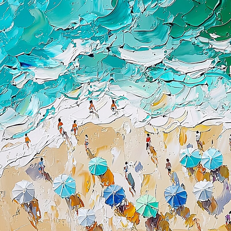 Handmade Original Summer Beach Oil Painting On Canvas Abstract Beach Party Wall Art for Home Decor With Stretched Frame/Without Inner Frame Painting 1
