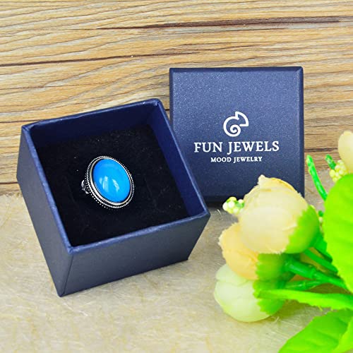 • HANDMADE COLOR CHANGING MOOD STONE: A vivid color changing mood stone, Stone Size: 12mm (W) x 16mm (L), set on a gorgeous vintage style ring. The mood stone changes colors with your body temperature and reveals your inner emotions! Fun Jewels’ mood stone is super thermo sensitive, can change in a cycle of 14 colors, and also many in between colors, unlike the poor quality mood rings, which can only change from Black/Brown to Green to Blue.