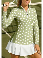 More information about Women's Geometric Circle Dot Sport Shirt Golf Polo Shirt Tennis Shirt Tennis Tee Long Sleeve Zipper Floral UPF50+ UV Resistant High Elasticity Moisture Wicking Breathable Tennis Golf Pickleball Stand