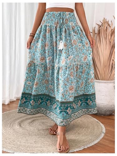 More information about Verdusa Women's Floral High Waisted Ruffle Long Skirt Boho Drawstring Tiered Flowy Maxi Skirts