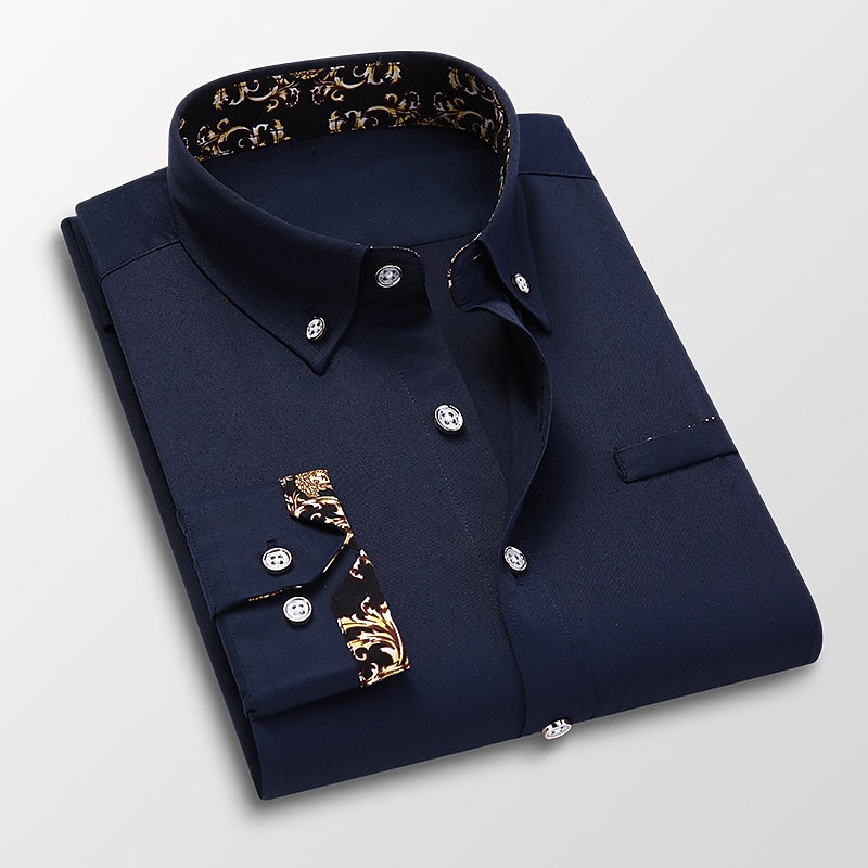 Men's Dress Shirt Button Down Shirt Collared Shirt Floral Wedding Work Wine Black White Navy Blue Long Sleeve Turndown Spring &  Fall Clothing Apparel Button-Down 13