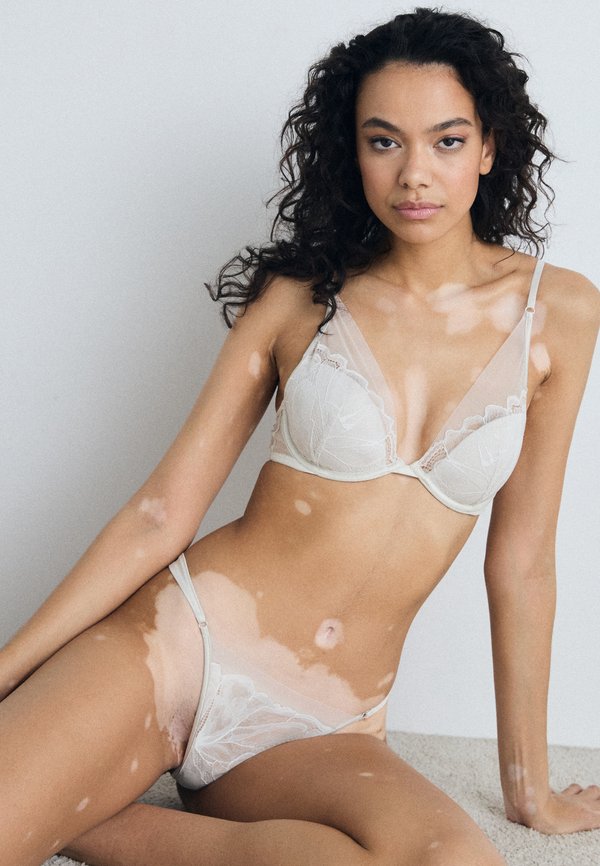 LIGHTLY LINED PLUNGE CK BLACK FLORAL LACE - Underwired bra - chalk 1