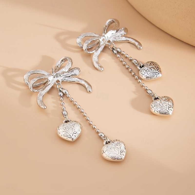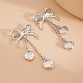 More information about Women's Hoop Earrings Geometrical Heart Precious Bowknot Elegant Fashion Cute Imitation Diamond Earrings Jewelry Silver / Golden For Wedding Party Daily 1 Pair