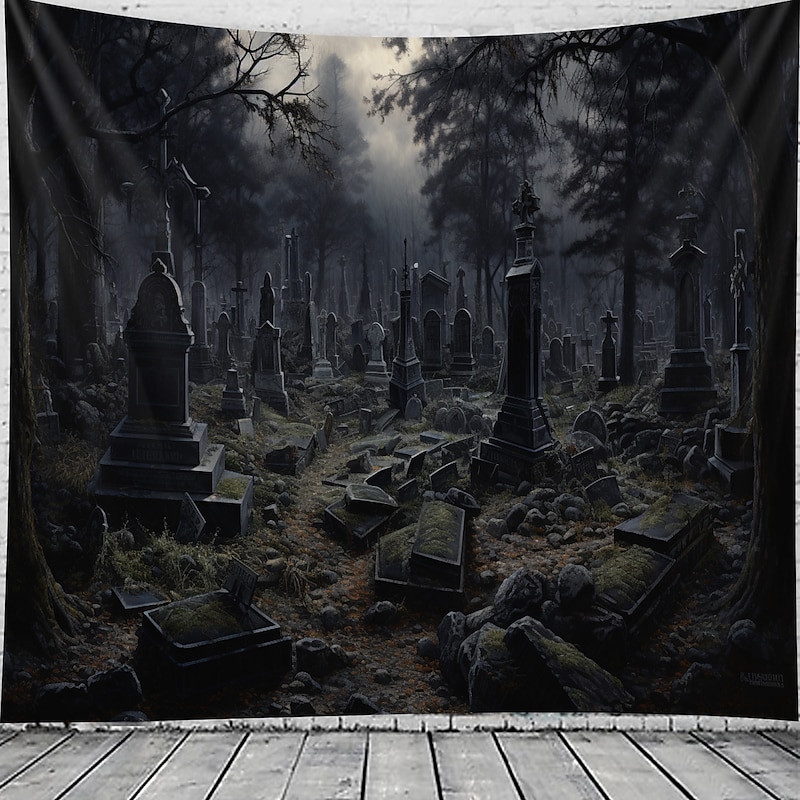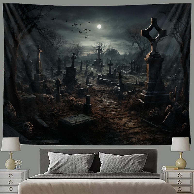 sought-after ! Halloween Graveyard Hanging Tapestry Wall Art Large Tapestry Mural Decor Photograph Backdrop Blanket Curtain Home Bedroom Living Room Decoration