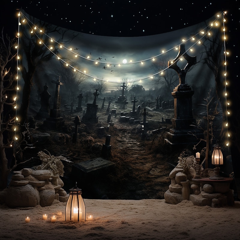 Halloween Graveyard Hanging Tapestry Wall Art Large Tapestry Mural Decor Photograph Backdrop Blanket Curtain Home Bedroom Living Room Decoration 11