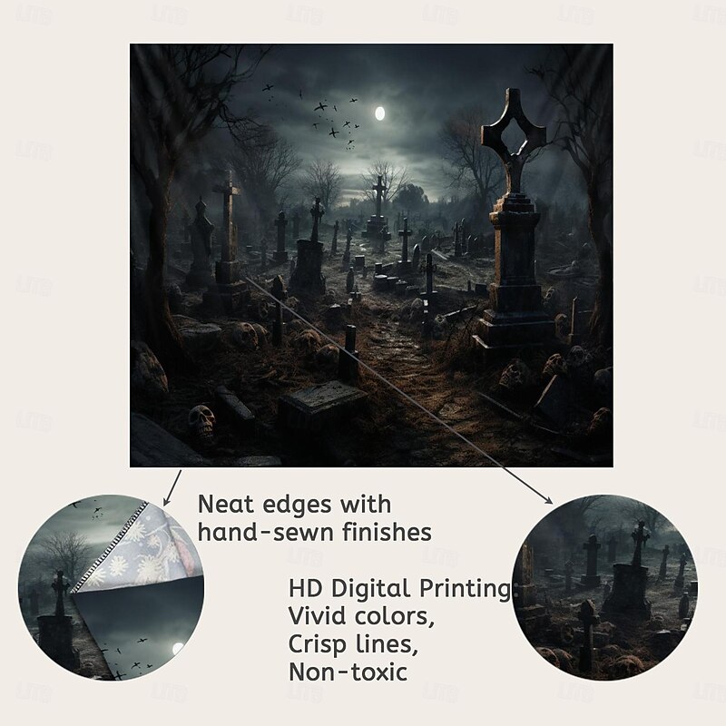 More information about Halloween Graveyard Hanging Tapestry Wall Art Large Tapestry Mural Decor Photograph Backdrop Blanket Curtain Home Bedroom Living Room Decoration