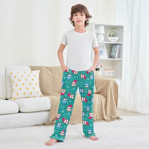 Xmas Penguin Snowflake Boys Long Pants Soft Trousers Elastic Waist Kids Lounge Bottoms with Pockets S-XL 5
