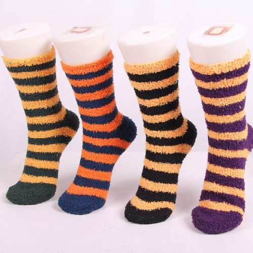 HOT ! BambooMN Super Soft Fuzzy Team Spirit Socks - Striped - 4 Pairs