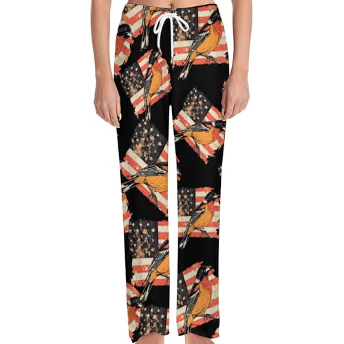 Vintage US Flag Baltimore Oriole Pajama Bottoms Lounge Pants Elastic Waistband Sleepwear Lounge for Men Women 3