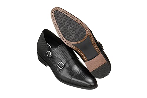 CALTO Men's Invisible Height Increasing Elevator Shoes - Black Leather Slip-on Dual Monk Straps Formal Loafers- 2.8 Inches Taller - K3114 - Size 10 D(M) US 4