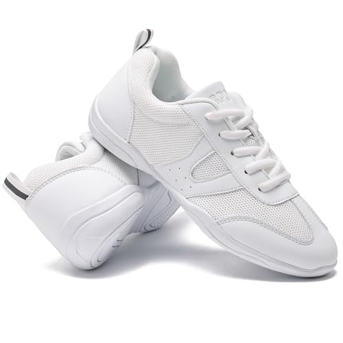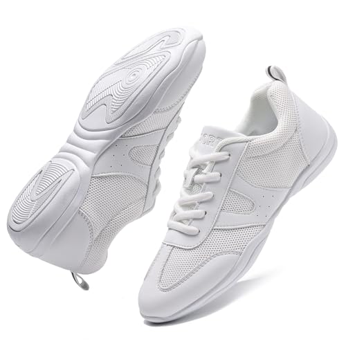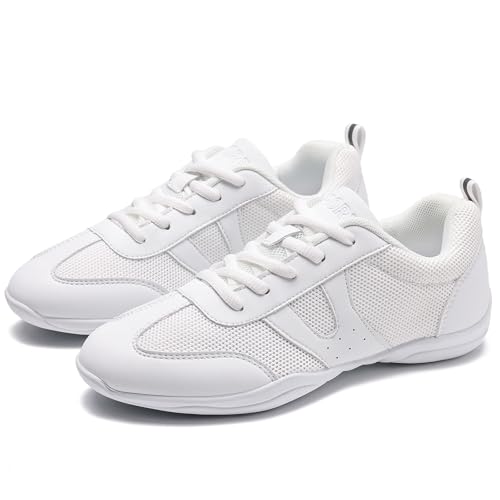 White Cheer Shoes Girls Womens Cheerleading Shoes Breathable Fabric Lightweight Comfortable Youth Kids Cheer Sneakers Size 4