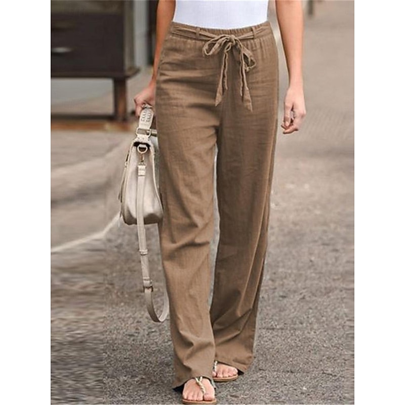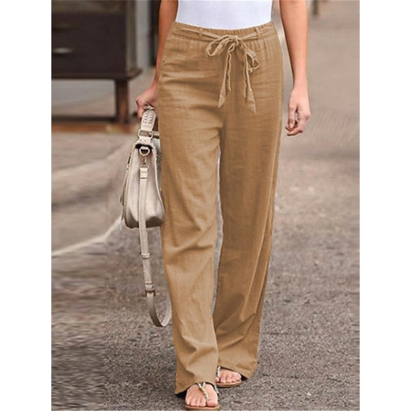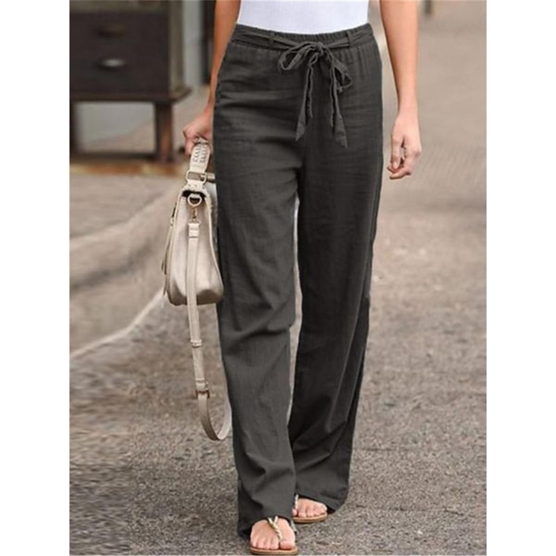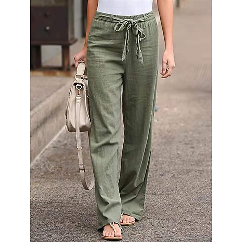 More information about Women's Wide Leg Cotton Linen Pants Pants Trousers Streetwear Casual Long High Waist Plain Pocket High Cut Breathability Soft Micro-elastic Vacation Street Daily Wear Black White Light Green Blue
