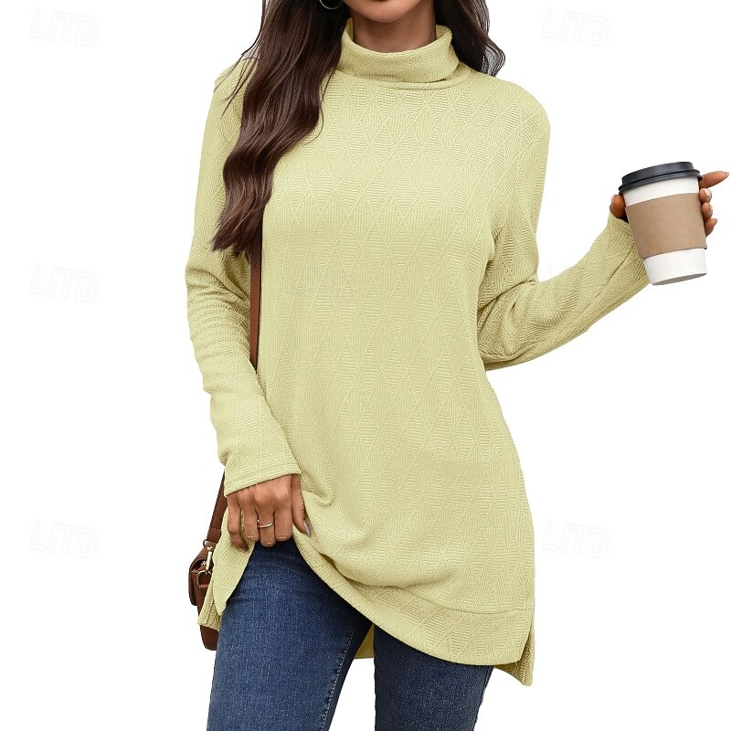 HOT ! Women's Blouse Plain Modern Casual Long Sleeve Turtleneck Regular Tops Daily Holiday Black Yellow Pink Navy Blue Fall