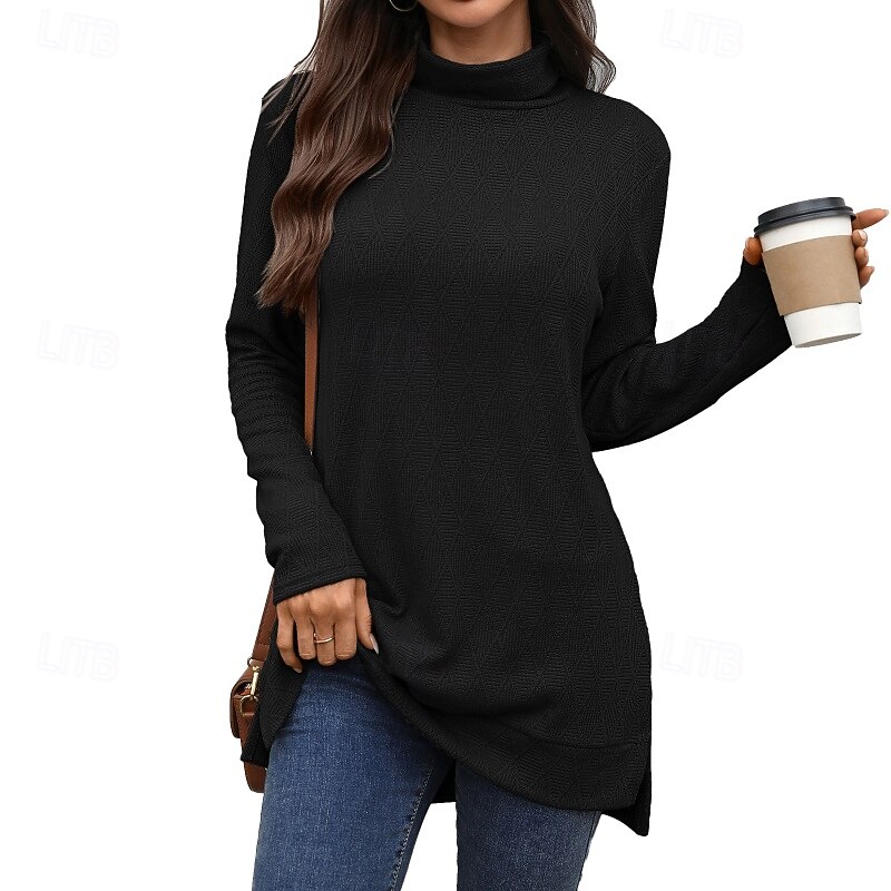 Highlights - Stay cozy and stylish this fall with our women's turtleneck sweater - Made from high-quality polyester fabric for a comfortable fit - Long sleeves perfect for chilly autumn days - Versatile casual style for daily wear - Elevate your fall wardrobe with this must-have piece