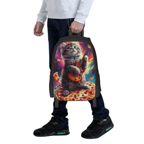 HOT ! Galaxy Pizza Cat Print Backpack For Men Women Lightweight Daypack For Daily Commutes Business Travel Hiking