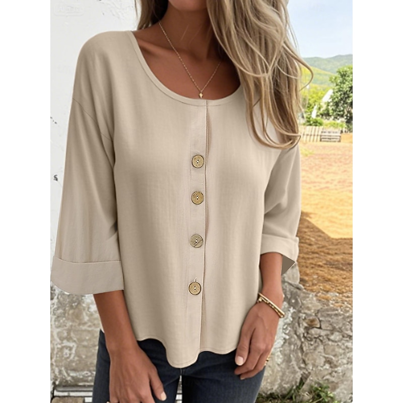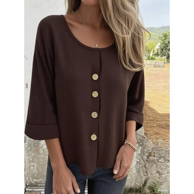 More information about Women's Blouse Solid Color Elegant Stylish Casual Long Sleeve Crew Neck Regular Tops Daily Holiday Black White Blue Brown Beige Spring Fall