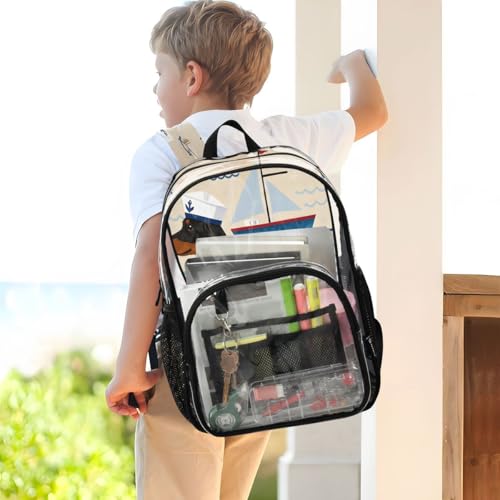 ALAZA Sailor Dachshund Dog Boat Clear Backpack PVC Transparent Bookbag Heavy Duty for Student Boy Girl Kids Adult School Travel Work 6