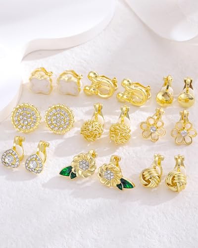 • 【JEWELRY FOR DAILY DRESSING】:This multi-style clip on gold earrings are great additions to ANY girl's wardrobe! They're perfect for matching your dresses, coats, jackets, and more, and they'll add a touch of charm to your everyday look. These clip earrings are suitable for those with non-pierced ears and who love clip-on earrings. Get yours today!
