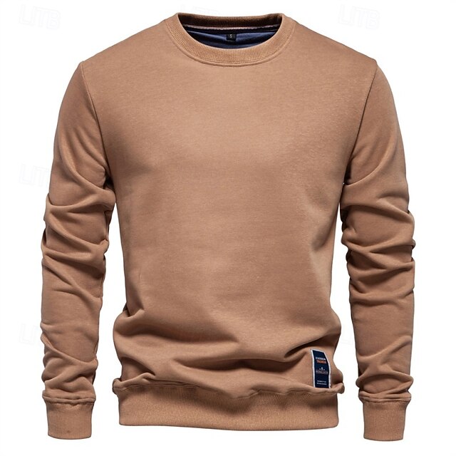 More information about Men's Sweatshirt Pullover Hoodie Sweatshirt Pullover Black Army Green Navy Blue Orange Khaki Crew Neck Plain Sports & Outdoor Casual Daily Streetwear Cool Sportswear Spring & Fall All Seasons