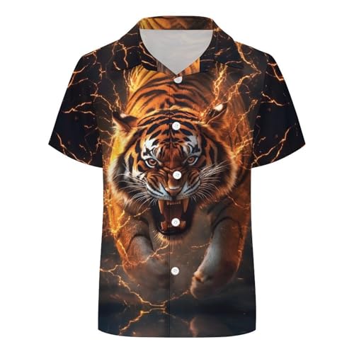 Boys Cool Tiger Print Casual Button Down Short Sleeve Hawaiian Shirt with Chest Pocket 1