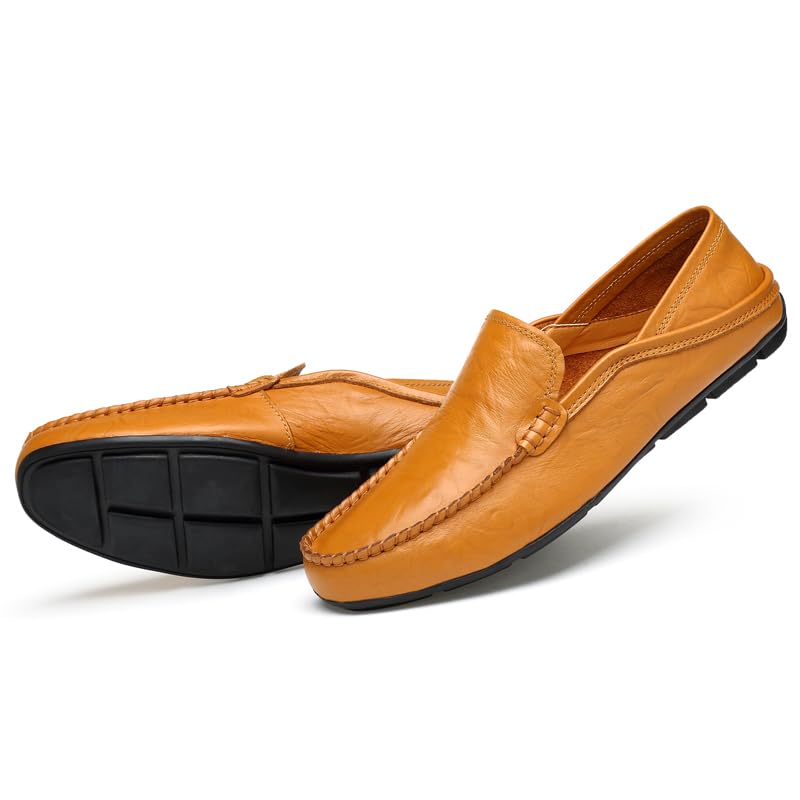 Men's Genuine Leather Loafers, Slip-on Driving Moccasins, Casual Flats, Brown,Blue,Black 5