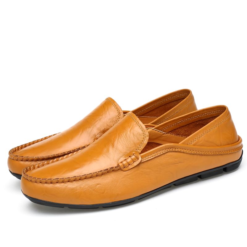 Men's Genuine Leather Loafers, Slip-on Driving Moccasins, Casual Flats, Brown,Blue,Black 7