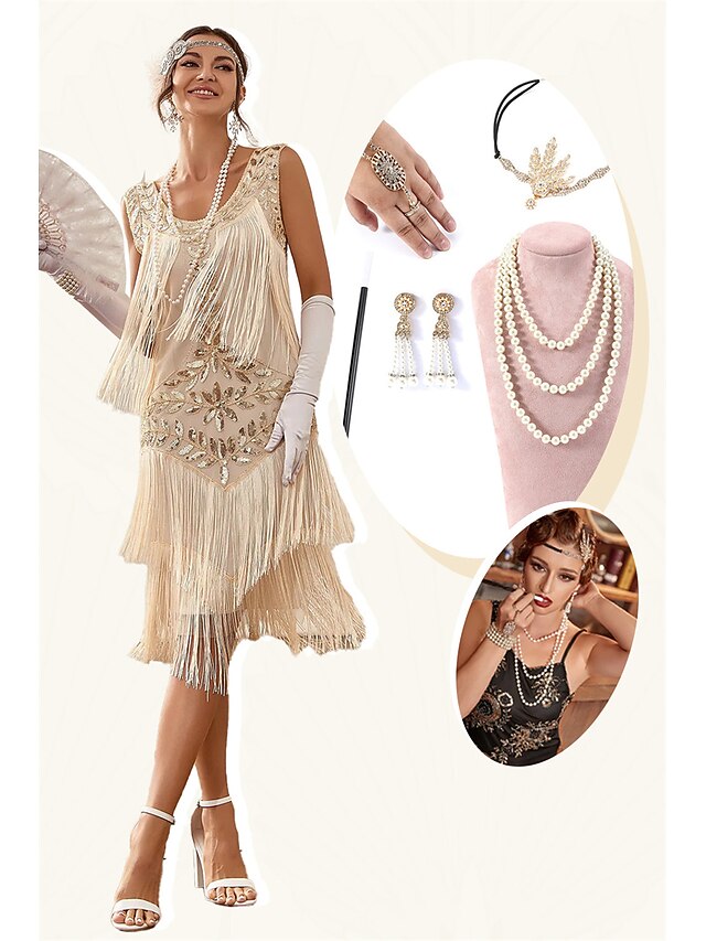 $82.99 - Retro Vintage Roaring 20s 1920s Flapper Dress Dress Outfits The Great Gatsby Wedding Guest Sequins Tassel Fringe Fancy Dress Women's Christmas Halloween Carnival Halloween Party / Evening Wedding 2025. Shop for cheap Outfits online? Buy at lightinthebox.com on sale today!