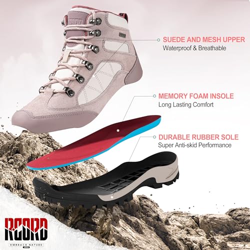 R CORD Womens Hiking Boots Breathable Hiking Boots Womens Waterproof Ankle Support Athletic Outdoor Non-slip Durable Hiking Boot for Outdoors 1