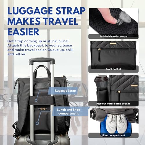 [All-in-one design] The MinkeeBlue Amber Puffer Womenβs Backpack (13L x 15H x 6W) offers a complete solution for busy women on the go. It has a folding divider in the middle of the bag that converts from a two compartment bag to an open tote bag to better organize and separate items in the bag. It's a 4-pcs bundle and includes an insulated lunch bag, shoe bag, key fob, detachable coin pouch wallet (backpack necklace), making it perfect for travel, work and everyday.[Built-in Multiple Compartments] The MinkeeBlue Amber Puffer Backpack features a convertible folding divider that creates upper and lower compartments, allowing you to neatly organize and separate your essentials like a laptop, lunch, shoes, or a change of clothes. A padded laptop compartment protects your device, while three inside pockets, and pen holders keep smaller items secure. An exterior pop-out water bottle pocket and front zipper pocket, making it ideal for work, travel or everyday.[Includes Lunch Bag] An insulated lunch bag keeps meals fresh for up to 12 hours (with ice pack). Lunch bag can be used independently of the tote bag. It is 11L x 5.5H x 5W can also be used as a toiletry or cosmetic bag. It has a zipper mesh pocket to store smaller items like utentils or makeup brushes. It's outer material is made of nylon with an inner leakproof lining to keep food cozy or cool.[Laptop Compatible Multi-Compartment Design] Women's computer backpack has two main compartments that converts to one main compartment, one inside zipper pocket, two inside patch pocket, padded laptop pocket providing protection for 13 (14.5 diagonal measurement) laptop and three ink pen holders. Carry clothes, sunglasses, wallet, make-up case, water bottle, notepad and more, with detachable coin pouch for quick access to phone and money.[Travel-Friendly Tote] The Amber Puffer Backpack, crafted from lightweight nylon, is an airline-approved carry-on personal bag that fits under the airplane seat. Designed for convenience, it features a luggage strap that slides over your suitcase handle for easy navigation through airports. The backpack's straps padded and adjustable, making it snug to carry. Perfect for travel, commuting to work, or heading to school.[Long Lasting & Comfortable] This Tote Bag is made of water resistant and durable nylon fabric, It two access points to the bag with nylon zipper for easy and fast opening and closing the bag. Metal feet protects your bag from dirt and grim on floors. This Tote Bag Is Perfect For Office Work, Travel, College, Nurses, Teaches and others for Daily Use.
