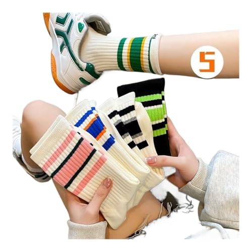5 Pairs Women Mid-Tube Socks Autumn Winter New School Style Simple Casual Cotton Socks Tide Medium Length Stockings 5