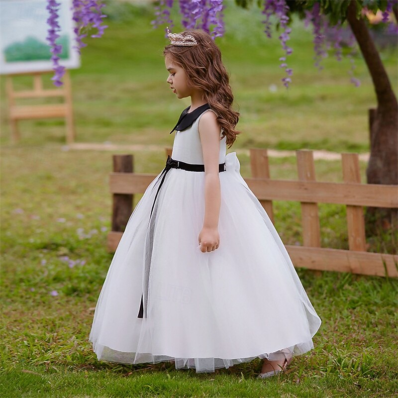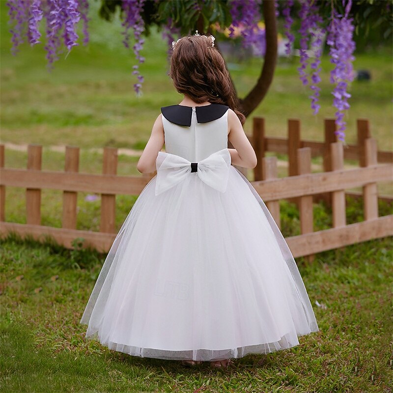 More information about Kids Girls' Party Dress Color Block Sleeveless Performance Wedding Party Tie Knot Beautiful Sweet Polyester Maxi Party Dress Swing Dress A Line Dress Summer 4-12 Years White Champagne Pink