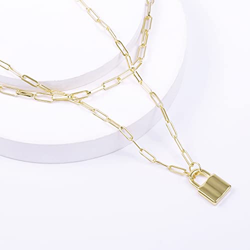 BOUTIQUELOVIN 14K Gold Plated Lock Necklace for Women Paperclip Link Chain Padlock Necklace Non-Tarnish 3