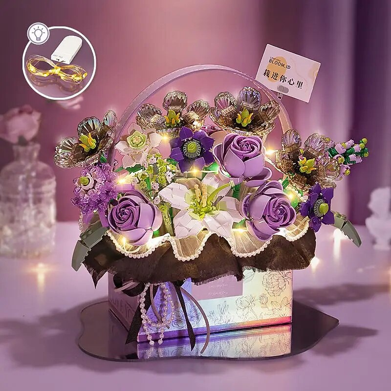 HOT ! Women's Day Gifts New Building Block Flower Rose Building Block Toy Magic Powder Portable Flower Bouquet Gift Box Series Gifts For Girls Valentine's Day for Girls Mother's Day Gifts for MoM