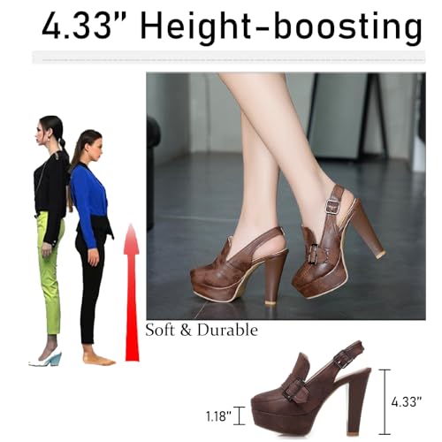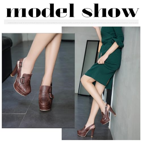 HOT ! Women's Leather Platform Slingback High Heels Pumps with Adjust Ankle Strap Fashion Comfort Closed Pointed Toe Increase Height Chunky Heel Sandals for Work Office Party Dress Shoes