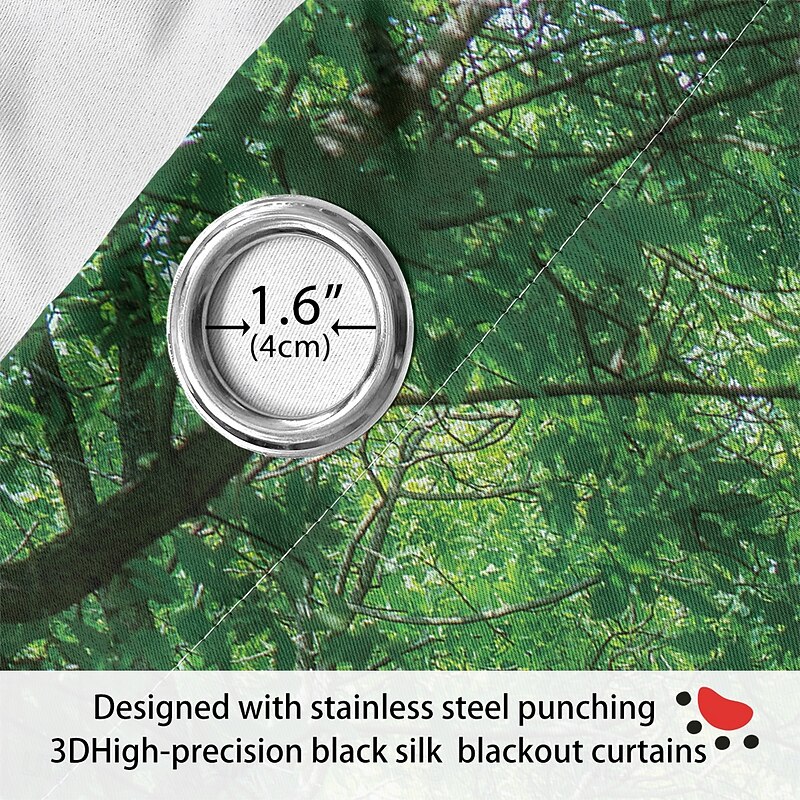 Green Healing Series Natural Forest Landscape Insulation Outdoor Balcony Rest Living Room Home Decoration 2-piece Set 3D Digital Printing Perforated Sunshade Curtains 14