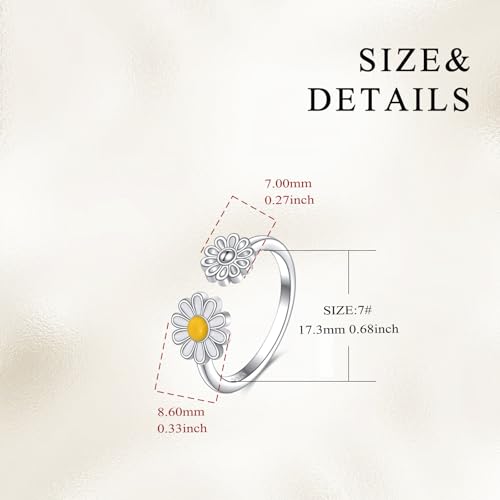 • Daisy Ring Size: adjsuatble 6# to 9# ring jewelry, Comfortable to wearing. The width of the big daisy is 8.6mm/0.33inch, and the width of the small daisy is 7mm/0.27inch