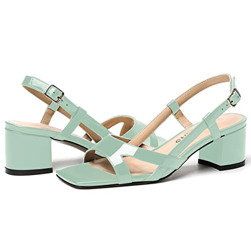 HOT ! WAYDERNS Women's Adjustable Strap Square Toe Ankle Strap Block Dating Slingback Casual Buckle Open Toe Patent Criss Cross Chunky Low Heel Heeled Sandals 2 Inch