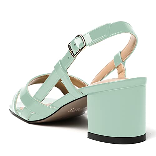 WAYDERNS Women's Adjustable Strap Square Toe Ankle Strap Block Dating Slingback Casual Buckle Open Toe Patent Criss Cross Chunky Low Heel Heeled Sandals 2 Inch 6