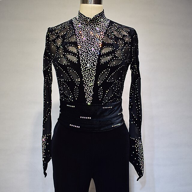 More information about Figure Skating Dress Women's Girls' Ice Skating Dress Outfits Black Spandex High Elasticity Training Competition Skating Wear Handmade Solid Color Crystal / Rhinestone Long Sleeve Ice Skating Winter